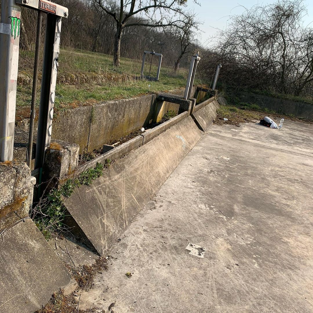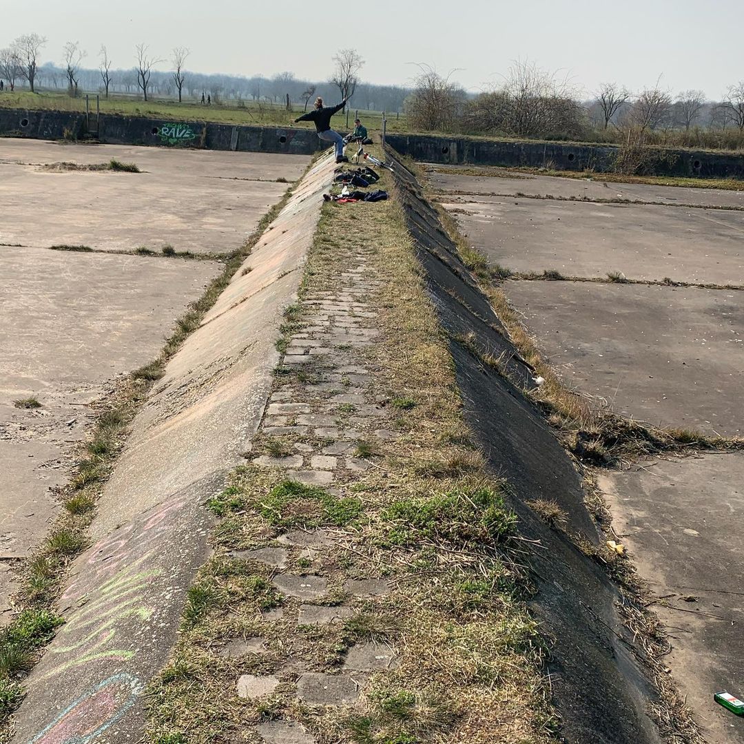 Ditch spot in the middle of nowhere, ideal with a broom but lots to skate here, gnarly spine too, brush sometimes needed